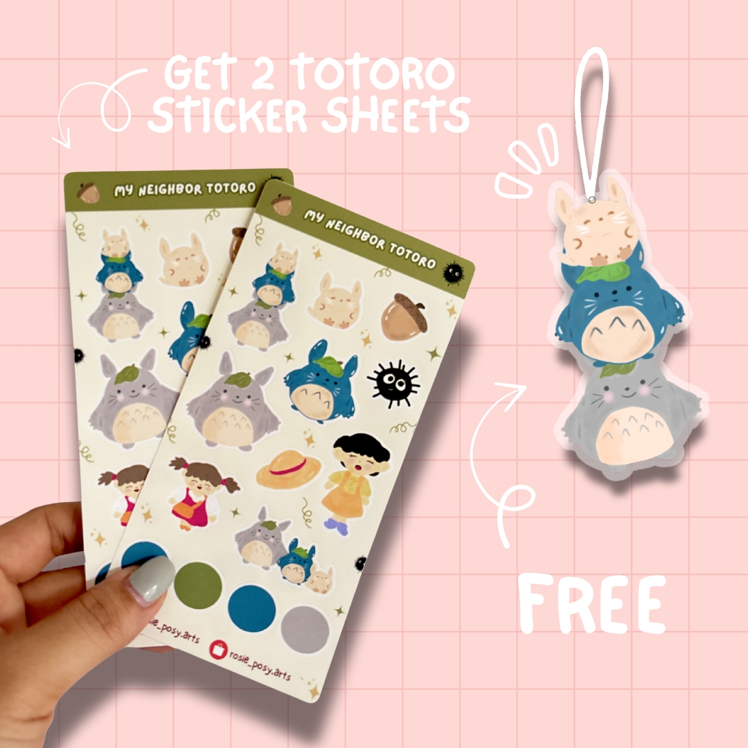 Buy 2 ‘My Neighbor Totoro’ Sticker Sheets, Get 1 Totoro phone charm.. FOR FREE!