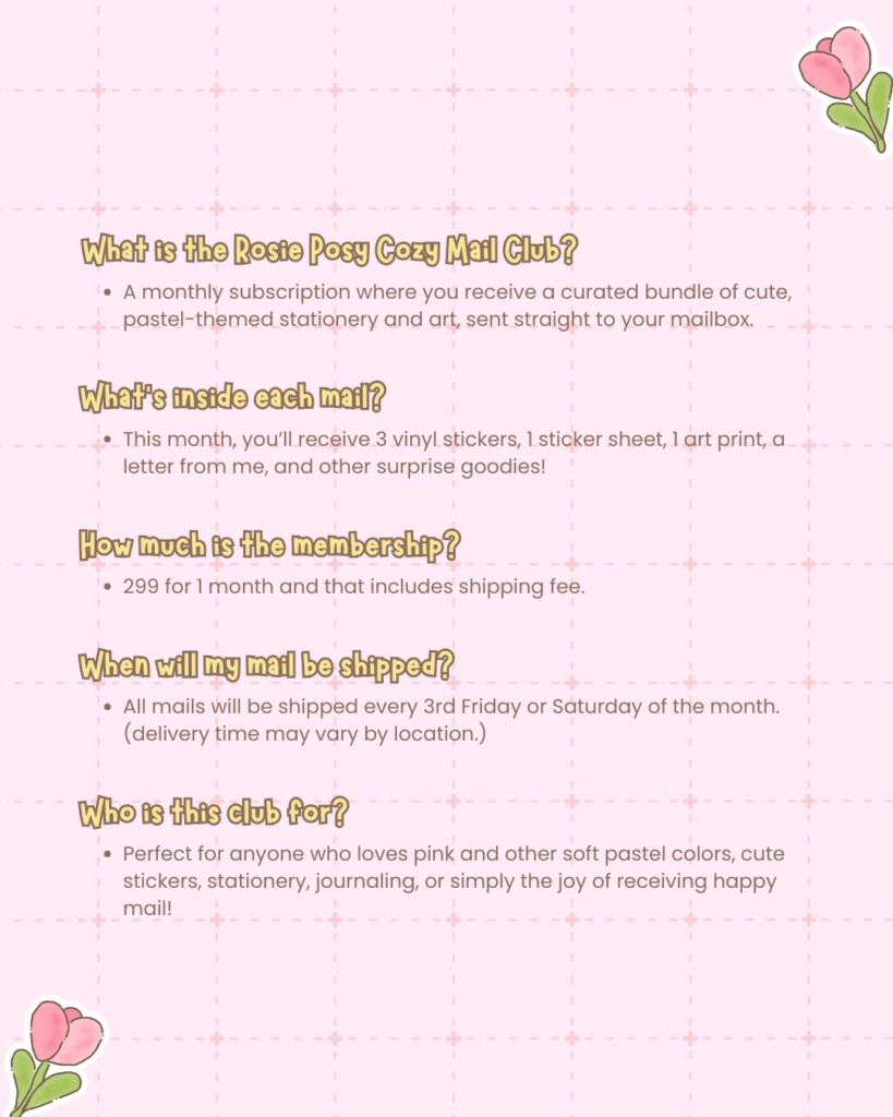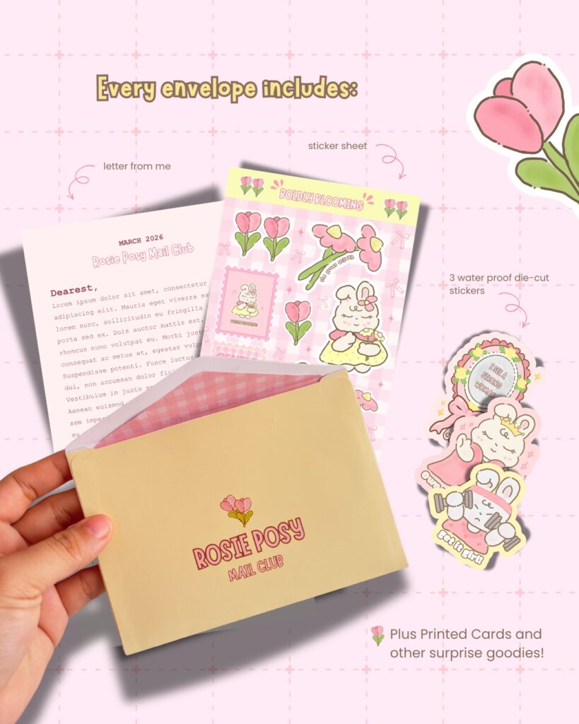 This club is perfect for you if you love: 🌷 Soft pastel colors 🌷 Cute stickers 🌷 Feminine, empowering themes 🌷 Happy mail that feels personal, warm, and inspiring